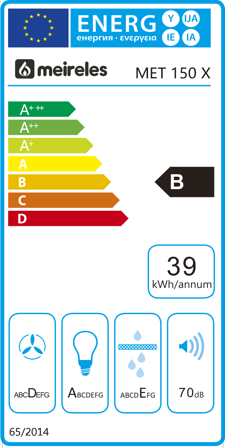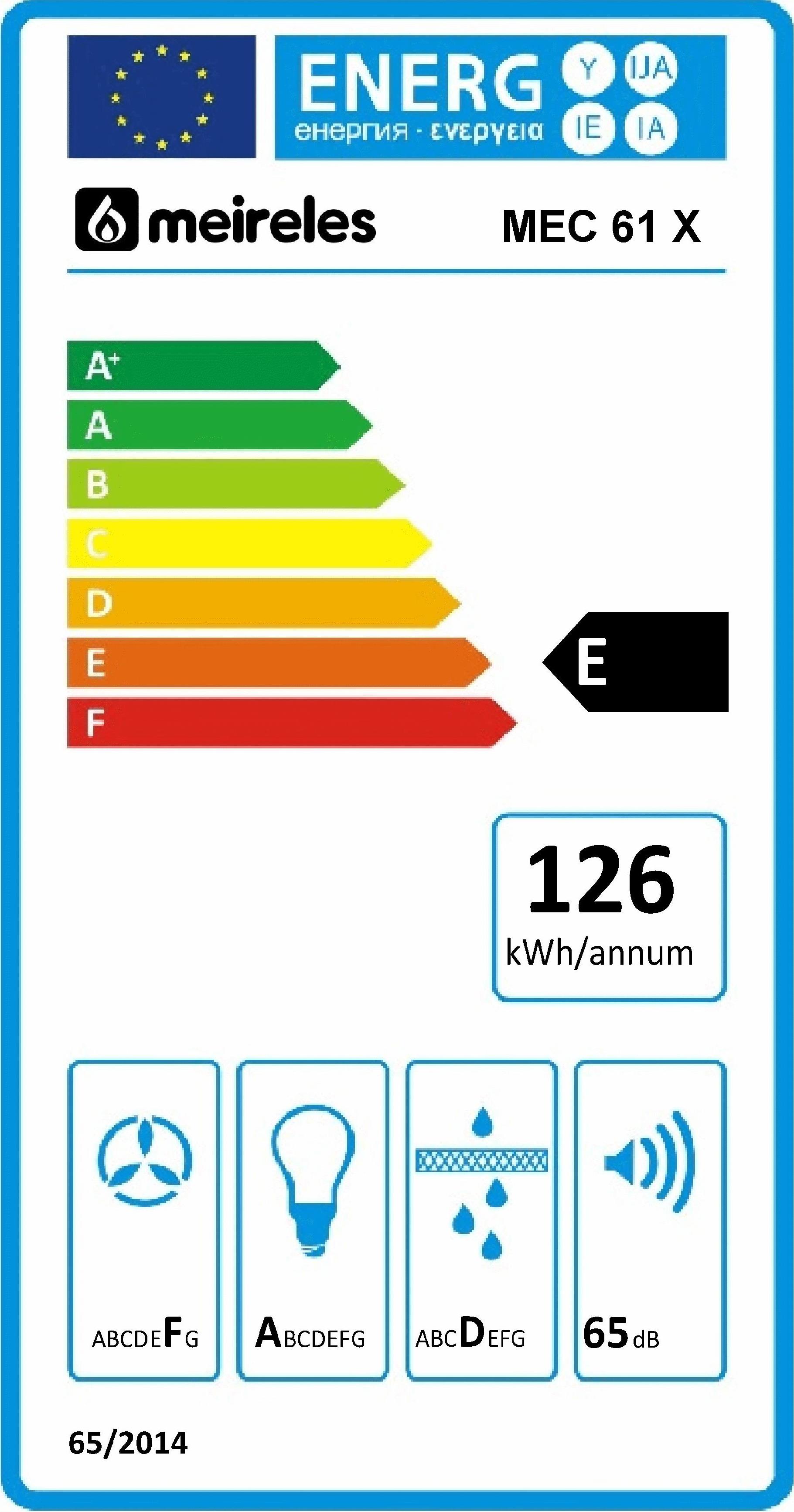 CLASSE E - LARGURA 60 CM - CAP. MÁXIMA EXTRAÇÃO: 365M3/H - 65dB - INOX
